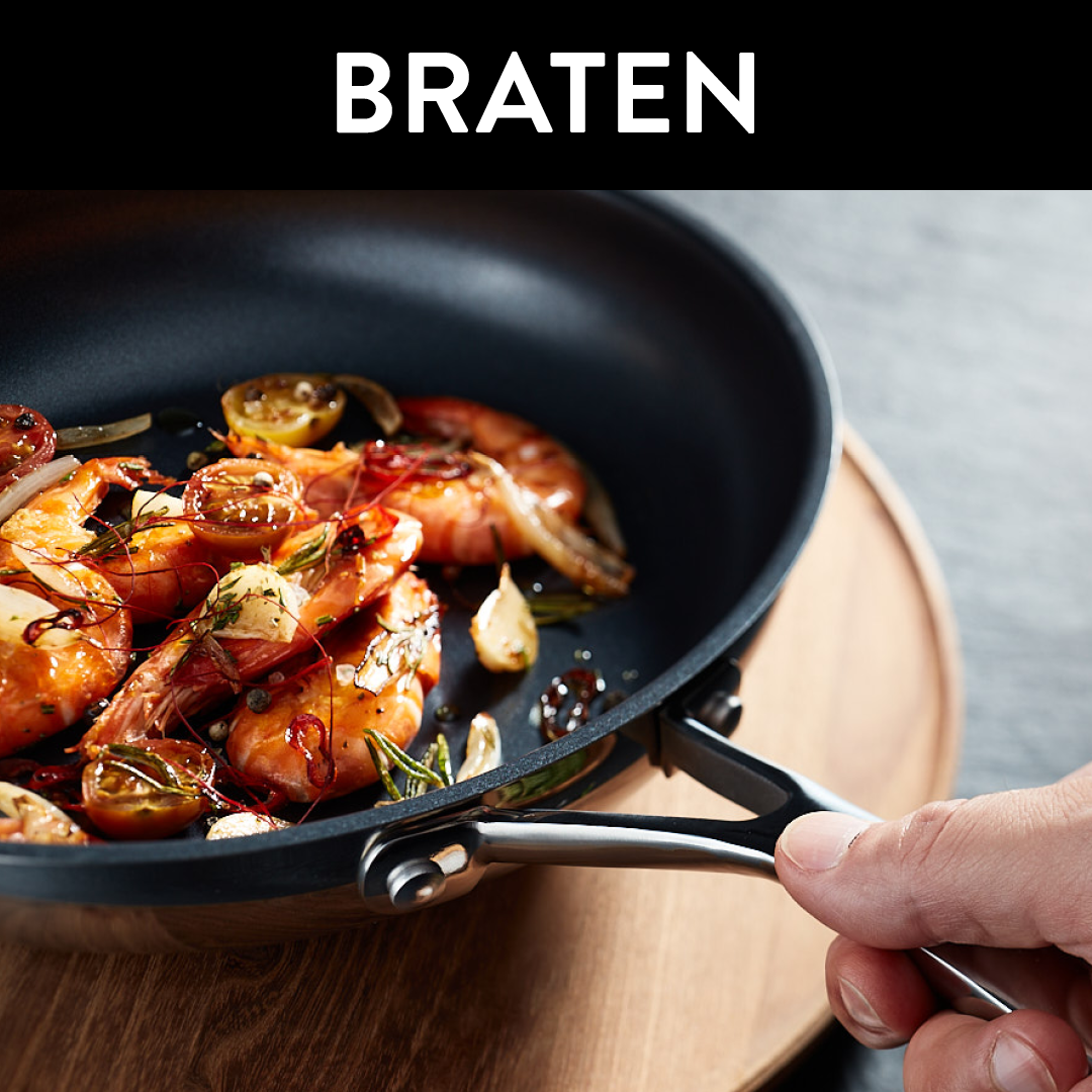 Optimale Wärmeverteilung, Material und Beschichtung entscheiden darüber, ob Fleisch oder Fisch knusprig und saftig gelingen, Gemüse knackig und zugleich zart wird